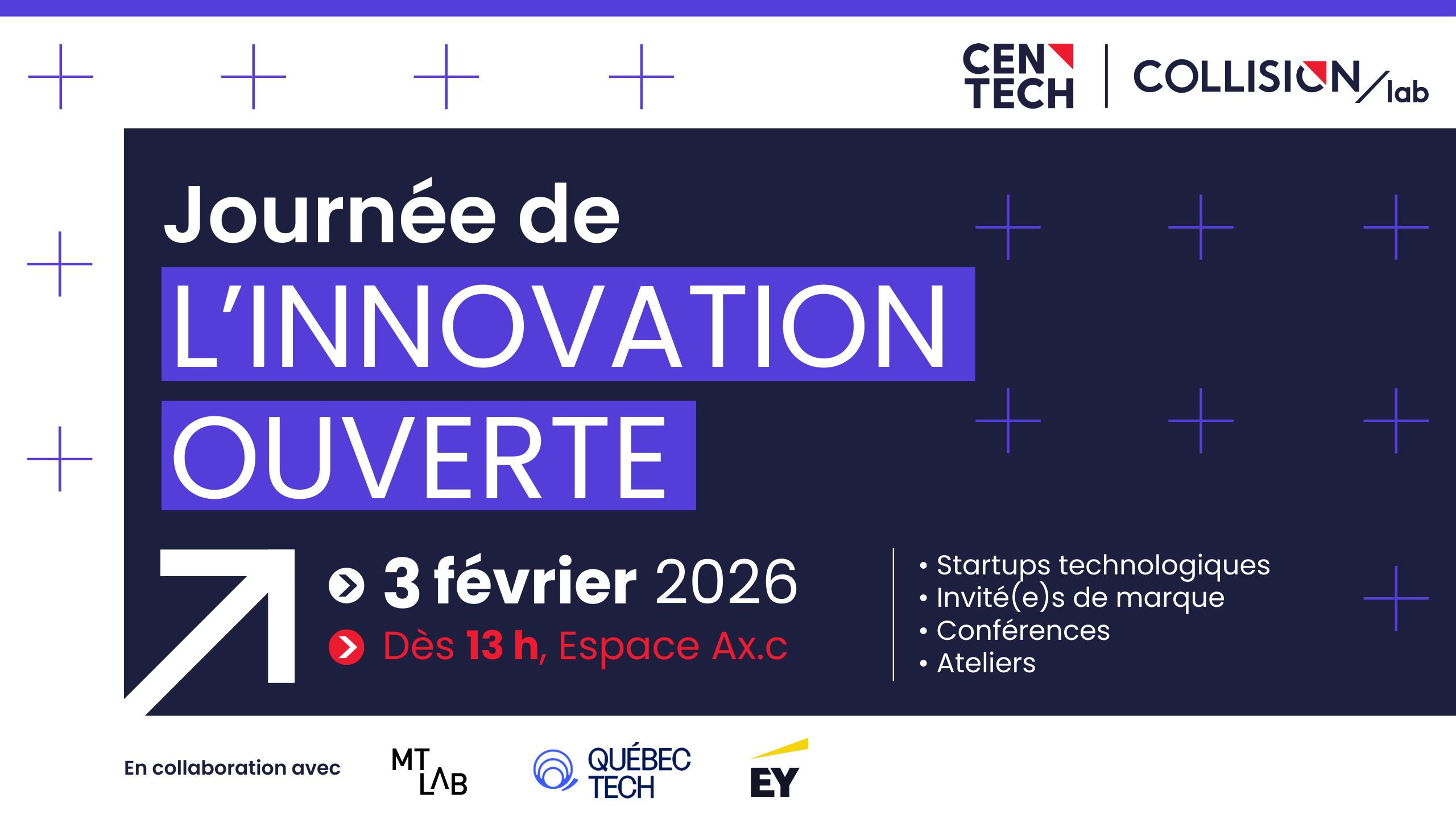 Rejoignez-nous le 3 février 2026 pour la 4ᵉ édition de la Journée de l’innovation ouverte, organisée par le Collision Lab en collaboration avec MT Lab et Québec Tech.