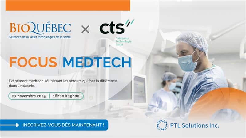 Joignez-vous à BIOQuébec et au CTS pour un évènement medtech, réunissant les acteurs qui font la différence dans l’industrie.
